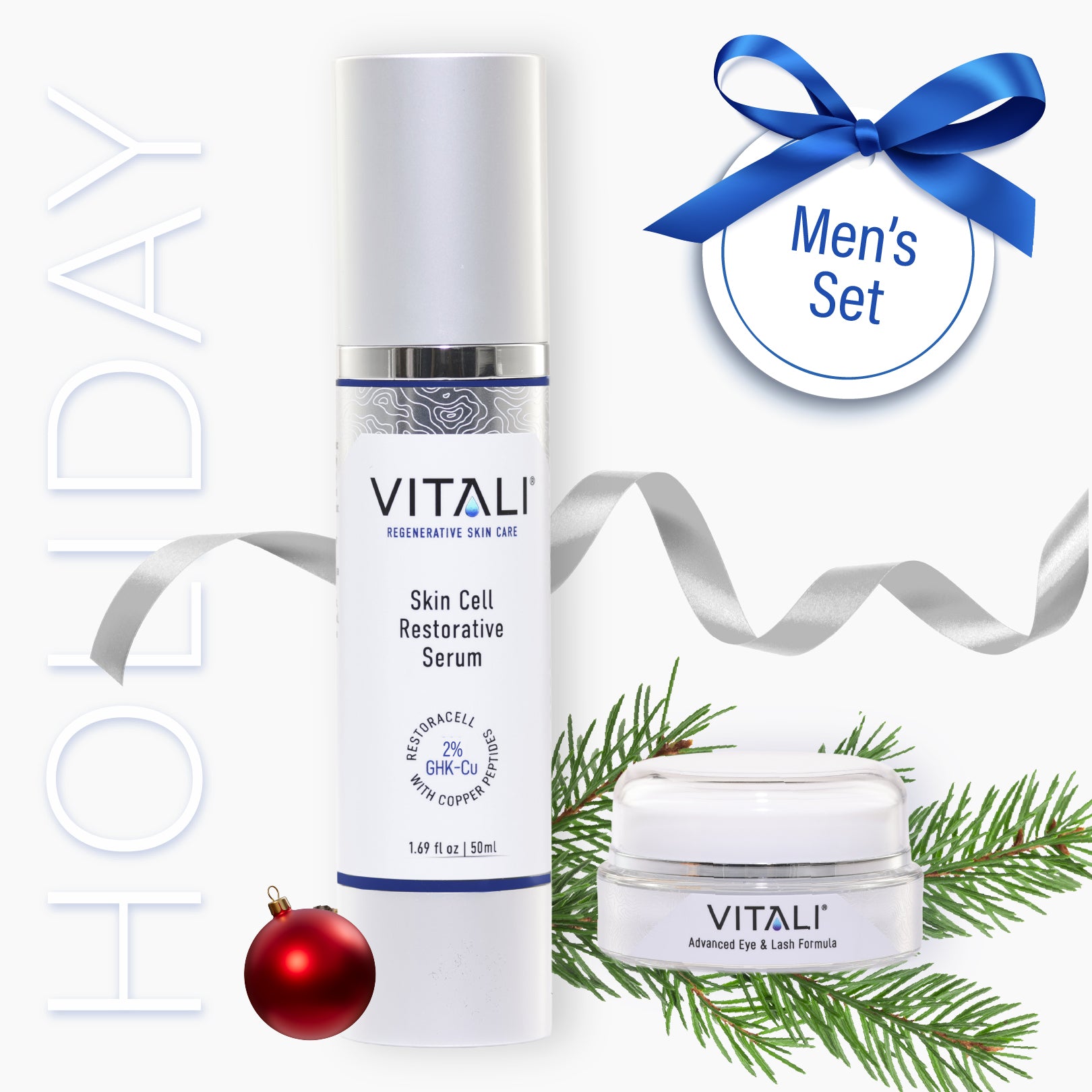 Our 2% GHK-Cu Skin Cell Restorative Serum lays the groundwork for a revitalized complexion, while the Advanced Eye & Lash Formula, a 4-peptide hero, specifically targets fine lines, dark circles, and puffiness around the eyes. It's the perfect routine for noticeable improvements in skin texture, firmness, and overall radiance with minimal effort.